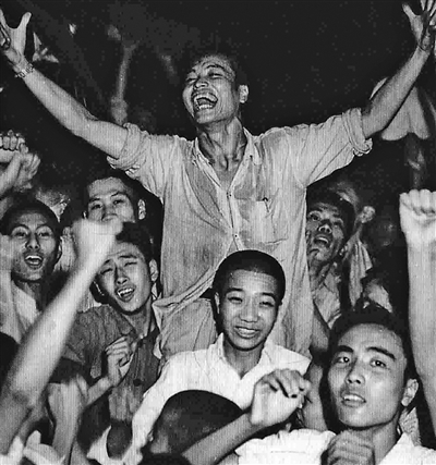 日本投降的消息传来,群众欢庆胜利。(资料照片)