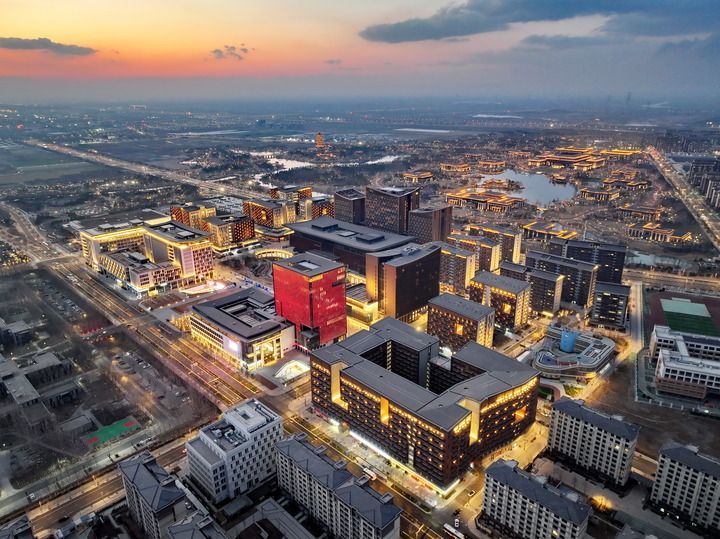 雄安商务服务中心夜景(2025年3月15日摄,无人机照片)。
